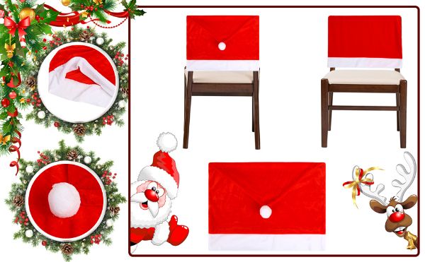 Pakett sisaldab: Komplektis on 4 tükki punase mütsiga söögitooli kattekatteid.