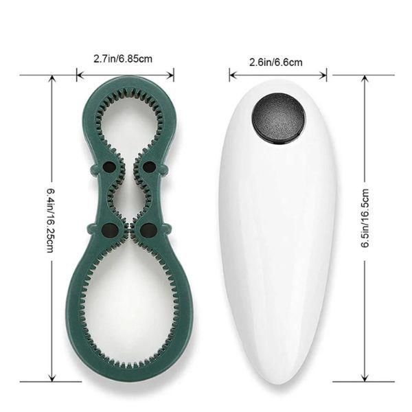 Mõõdud: 6,7 x 2,4 tolli (purgiavaja), 6,5 tolli (pudeliavaja).