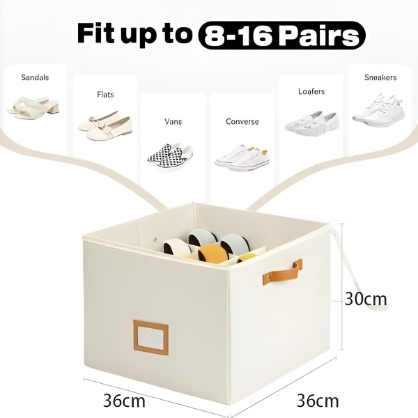 SHOVERA jalanõude korraldaja on loodud mahutama 8–16 paari jalanõusid, sealhulgas sandaale, susse ja tosse, kompaktses 36x36x30 cm suuruses. Selle kokkupandav disain tagab lihtsa hoiustamise, kui seda ei kasutata, muutes selle ideaalseks kodudesse, ühiselamutesse ja hooajaliste jalanõude jaoks.